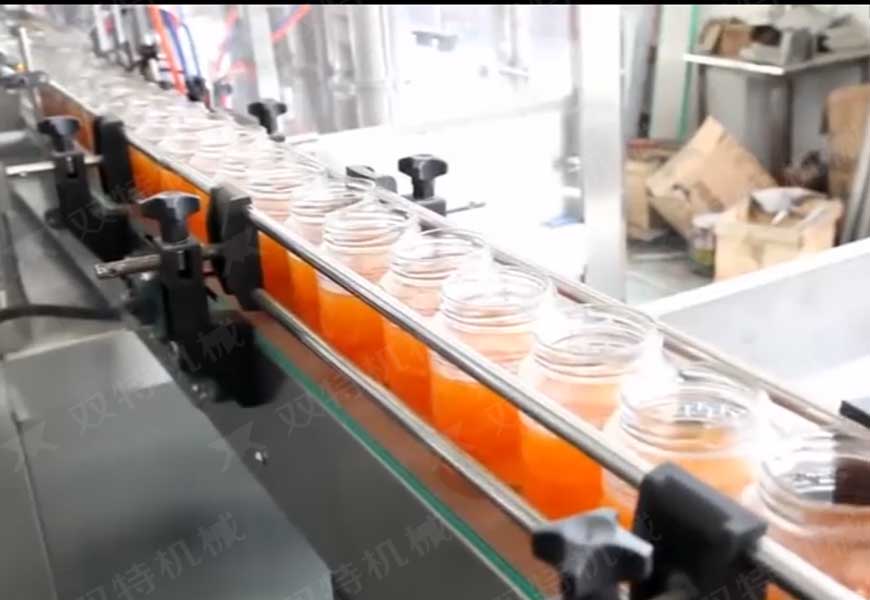 蜂蜜柚子茶灌裝設(shè)備具有快速清洗、快速調(diào)整、容積計量泵動作無極調(diào)速,全線采用智能化控制系統(tǒng),調(diào)整裝量、或更換品種只需在觸摸屏上設(shè)定即可。蜂蜜柚子茶灌裝生產(chǎn)線有洗瓶機(jī)、隧道式熱風(fēng)滅菌烘箱、蜂蜜灌裝機(jī)、貼標(biāo)機(jī)、裝箱系統(tǒng)等設(shè)備等。